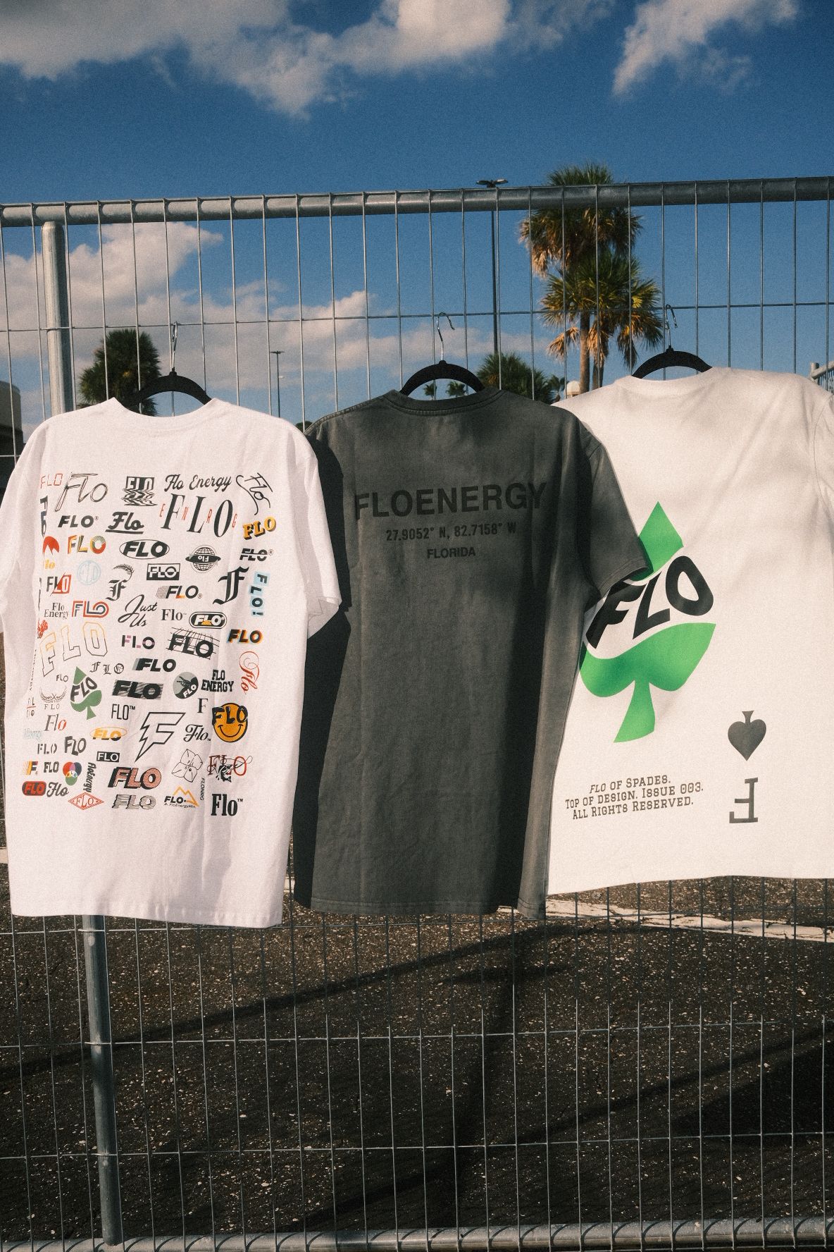 Featuring the Flogo Tee, Flo Fam Tee, and the Flo of Spades Tee
